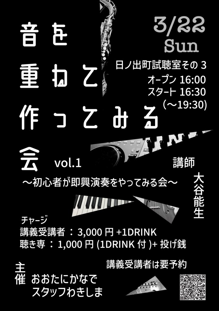 フリー・インプロビゼーションの演奏について学ぶワークショップです。