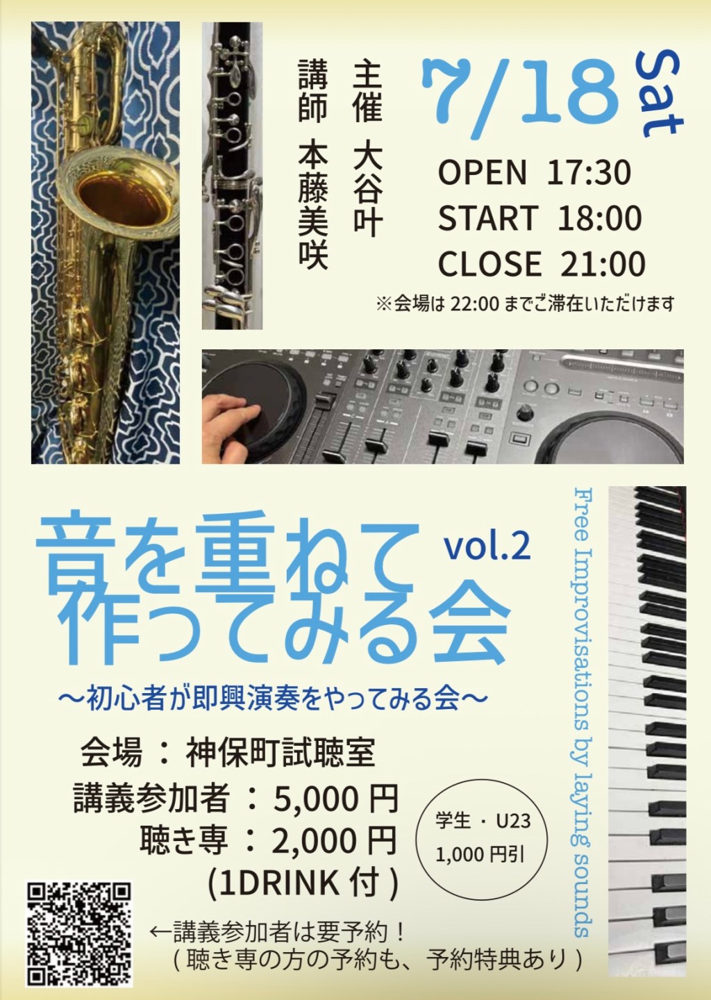 フリー・インプロビゼーションを素人がやってみる会として「音を重ねて作ってみる会」というワークショップを企画しており、今回の企画はその第2弾となります。